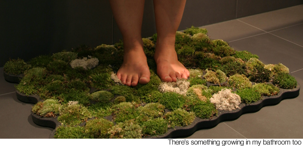 In August, the “living bath mat”—went on sale. Created by Swiss artist La Chanh Nguyen, the mats are made of seventy balls of living moss held together in a latex fame, and are meant for actual use in actual bathrooms. “The humidity of the bathroom and the drops flowing from the body,” says Nguyen, “water the mosses. This vegetation carpet procures a great feeling to your feet.” Cost: about $70. (Photo via La Chanh Nguyen.)
