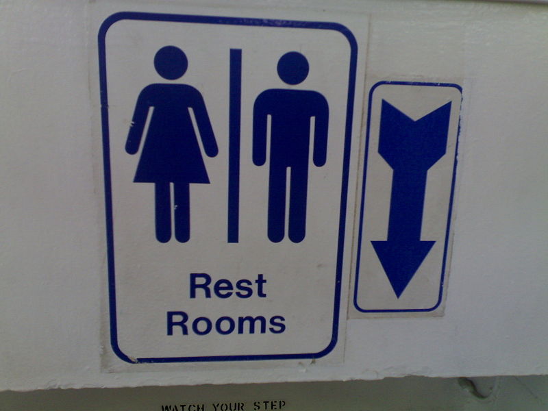 Yet again in June, a man in a Dallas, Texas, Wal-Mart called police to report that a man in the stall next to him had reached his hand under the stalll divider…and snapped a photo of him with his cell phone. Police said surveillance video showed the man leaving the store in a blue Mustang convertible, and that anyone seeing such a vehicle…should avoid going to the restroom with whoever was driving it. (Photo of bathroom sign with arrow showing where you to put cell phone camera found somewhere on the internet.)