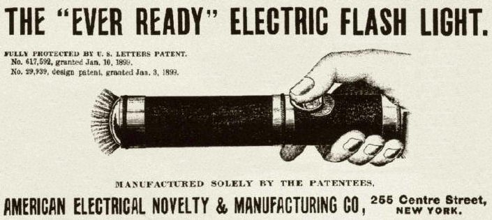 A few years after D-cell batteries were invented in 1896 came the first battery-powered hand lights. The first one— called the “Electrical Hand Torch”—was invented by American Conrad Hubert. Because early batteries were weak and the contacts faulty, the lights flashed a lot, hence the name “flashlight.”