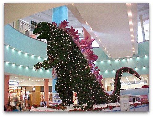 • Christmas light displays are also becoming increasingly common. In 2000, a Tokyo shopping mall set up a gigantic “Godzilla Christmas Tree” complete with twinkling lights. It was also capable of “breathing” steam out of its mouth.