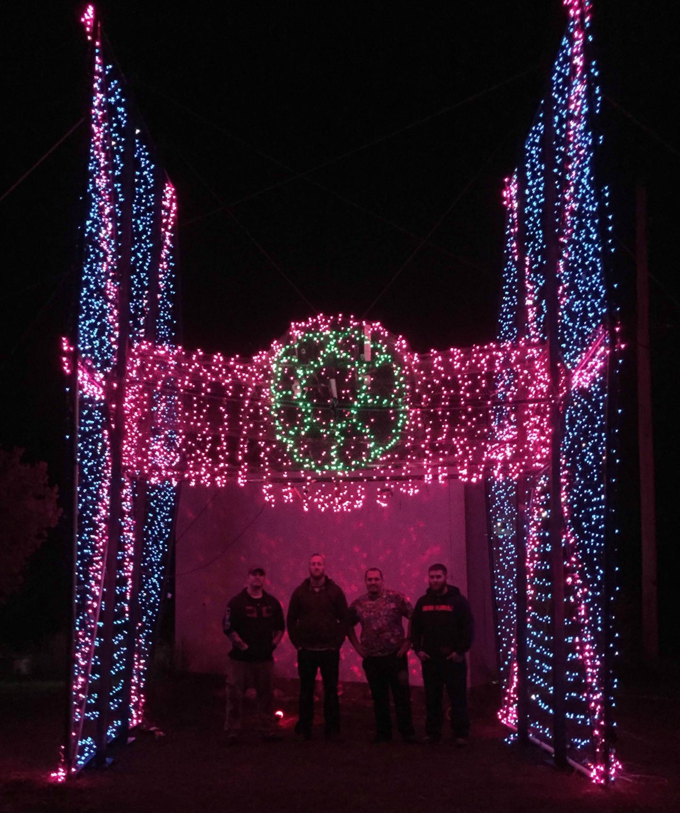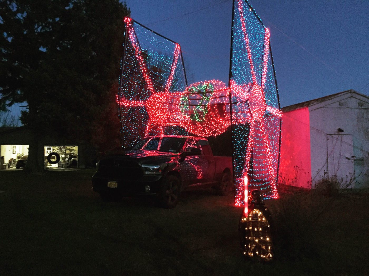 Maxwell DeLorm of Munnsville, New York, decided to decorate his house with something other than jolly Santas this year. Instead, he and his friends constructed one of the spaceships from the Star Wars films. His red TIE Fighter was built out of 10,300 Christmas lights and lots of PVC pipe. Each wing is over 20 feet tall and 14 feet wide. Putting it together required over a month of labor and about $3,400 worth of supplies. (Click on the pictures below to enlarge them.)