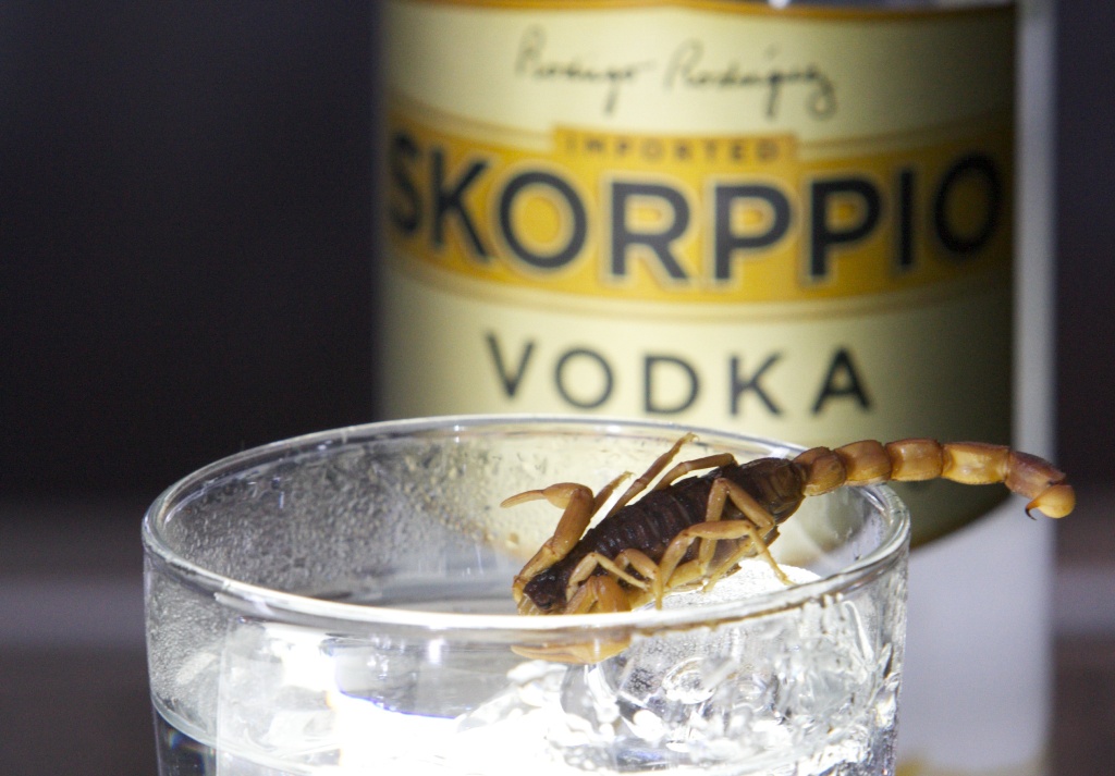 Skorppio-brand vodka doesn’t have any particular extra flavor, but it does come with a real, de-poisoned scorpion, much like a worm comes in a bottle of mescal.