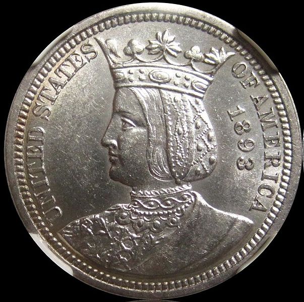 The first real woman (not a symbolic figure) on an American commemorative coin was also the only foreign woman— Queen Isabella of Spain, on an 1893 quarter dollar.