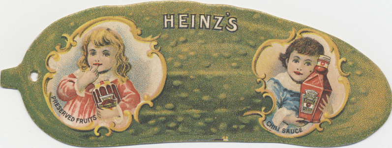 The H. J. Heinz Company first sold pickles in 1876. At the 1893 Chicago World’s Fair, Heinz gave away “pickle pins” (green pins shaped like pickles with the word “Heinz” on them). Heinz still makes them…and has given away more than 100 million.