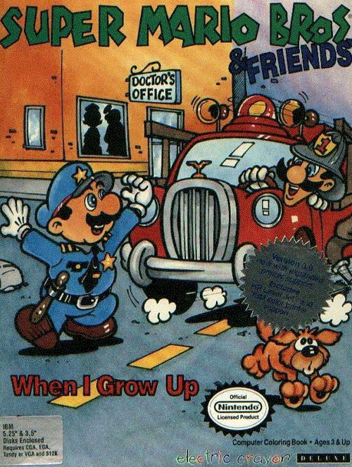 This game, which was meant to expose little kids to possible careers, came out for home computers in 1992. It consisted entirely of still images of Mario, Luigi, and other characters from video games working as nurses, barbers, and postal workers. Kids could then color in the pictures by clicking on an selecting one of 16 different shades.