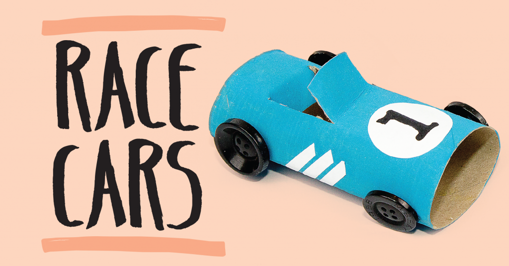 1. Paint the toilet-roll tube in one color on the outside only, and leave to dry completely. Once dry, paint on details, such as racing stripes and a circle. Once the paint is completely dry, write a racing number in the circle with a black felt tip pen.